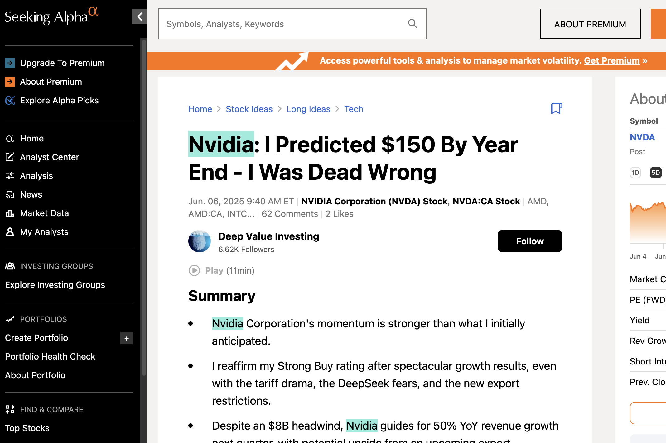 - Example Community Nvidia article on Seeking Alpha