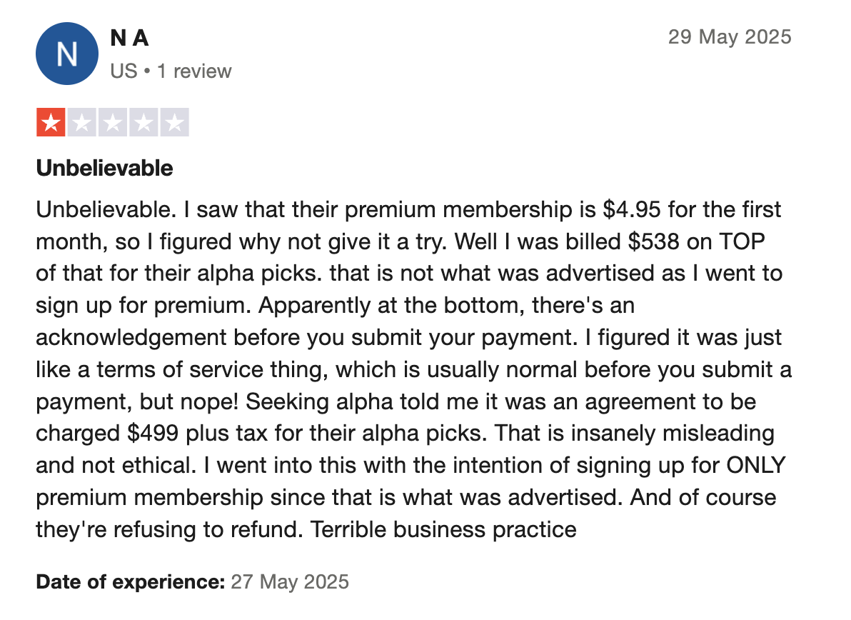 Seeking Alpha Trustpilot: 3.9 ★★★☆☆